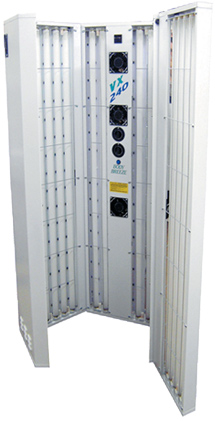 The revolutionary ‘Black Shadow Electronic’ incorporates new technology, highly efficient electronic chokes, and 0.3 Evolution Electronic tubes which have optimised UVA/UVB tanning performance – resulting in a deeper, longer lasting tan. The ergonomically shaped, 5-panel unit has been designed for full body coverage providing customer comfort whilst maintaining close proximity tanning.